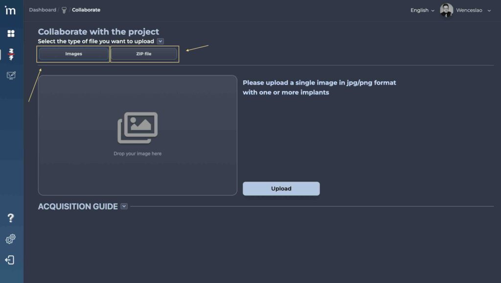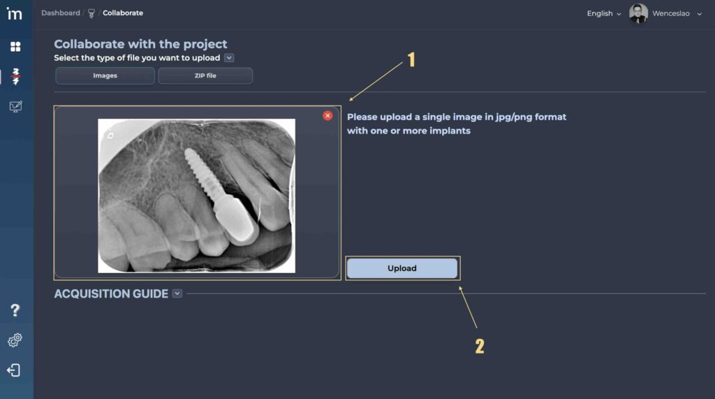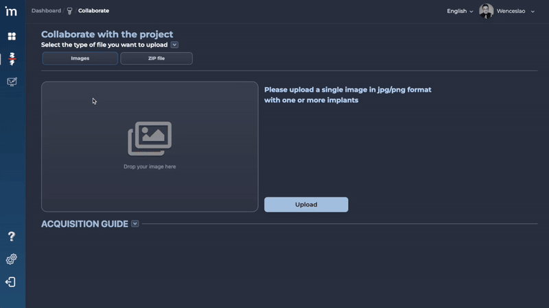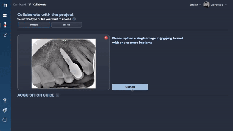 Cualquiera que quiera ayudar a aumentar la base de datos de implantes de MovumStudio® puede subir radiografías al algoritmo de la siguiente manera.