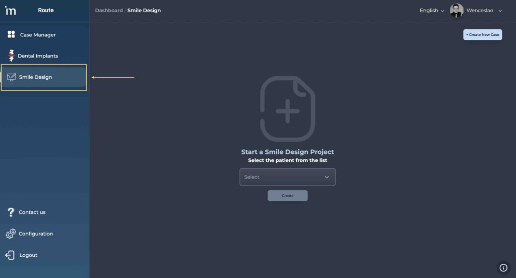 1️⃣ Navega hasta el menú desplegable de la izquierda y haz click en el módulo Diseño de Sonrisa.