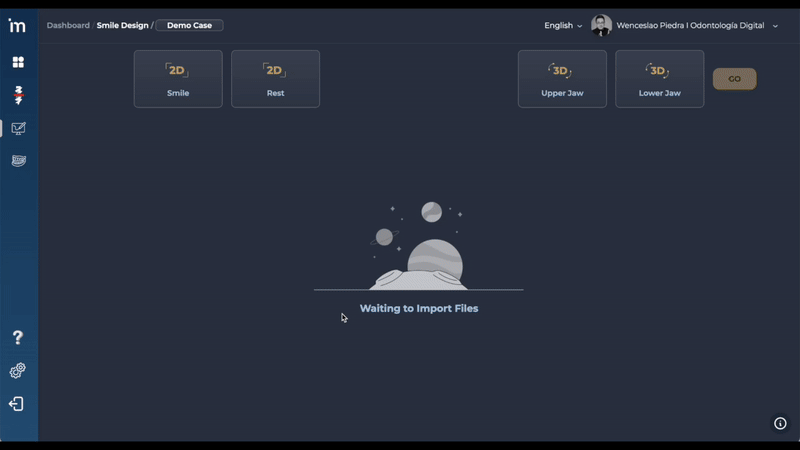 Subiendo la información correspondiente en cada una de las casillas. Si no subes fotografía de reposo del paciente y archivos STL´s, los algoritmos no tienen suficiente información para realizar un análisis facial y de sonrisa correcto. Obtendrás un resultado aproximado.