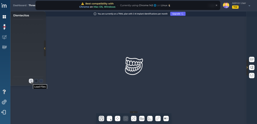 3️⃣ Haz clic en el botón Load files situado en el sidebar de la izquierda.Se visualizarán los archivos que se hayan cargado para ese paciente desde el Case Manager.