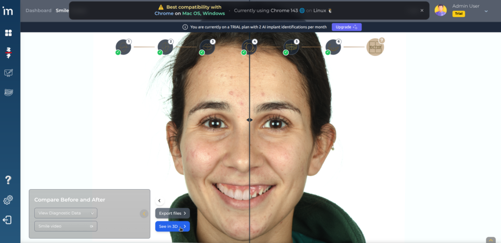 1️⃣ Al terminar un caso en Smile Design, en la última pantalla parecerá el botón See in 3D. Pulsando en él se abrirá 3D Studio.