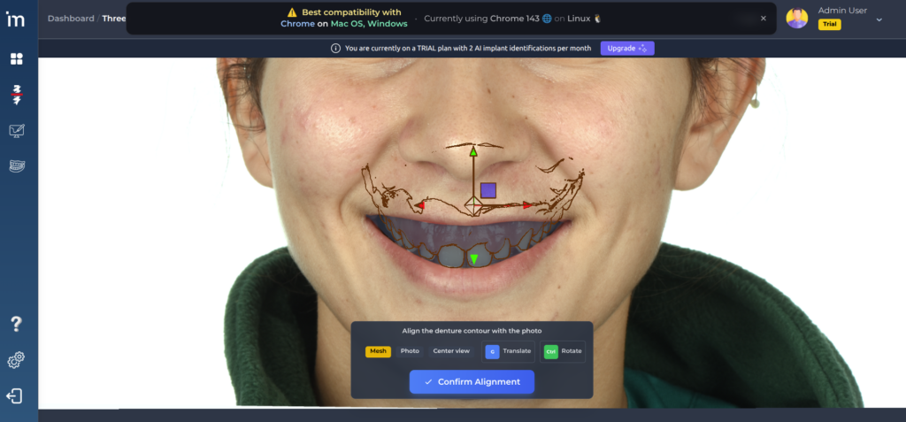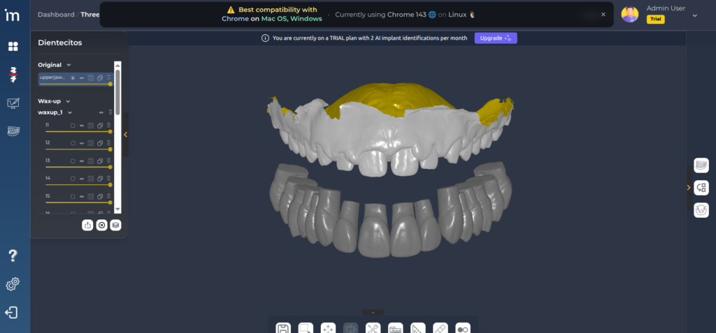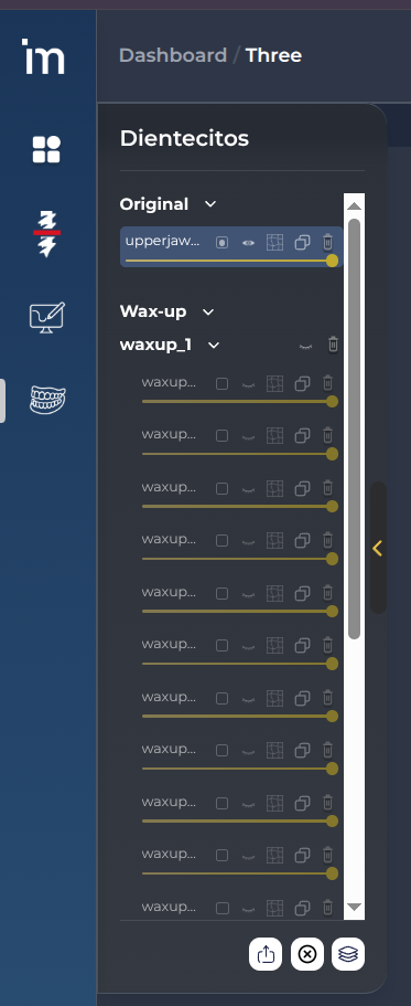 Al abrir el resultado del Smile design se proyectarán el STL y el encerado sobre la imagen y en caso de ser necesario se puede corregir la alineación del STL con la imagen.